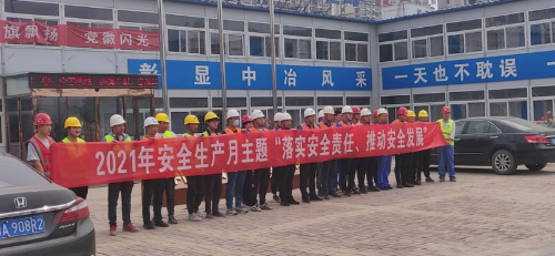 今年6月,是全國第20個安全生產月,為推進項目建設安全快速地推進,6月1日上午,山東分公司曹縣安置房項目部積極策劃開展2021年“安全生產月”活動啟動儀式,項目部領導班子、各勞務隊隊經理以及在崗職工參加了此次啟動儀式。