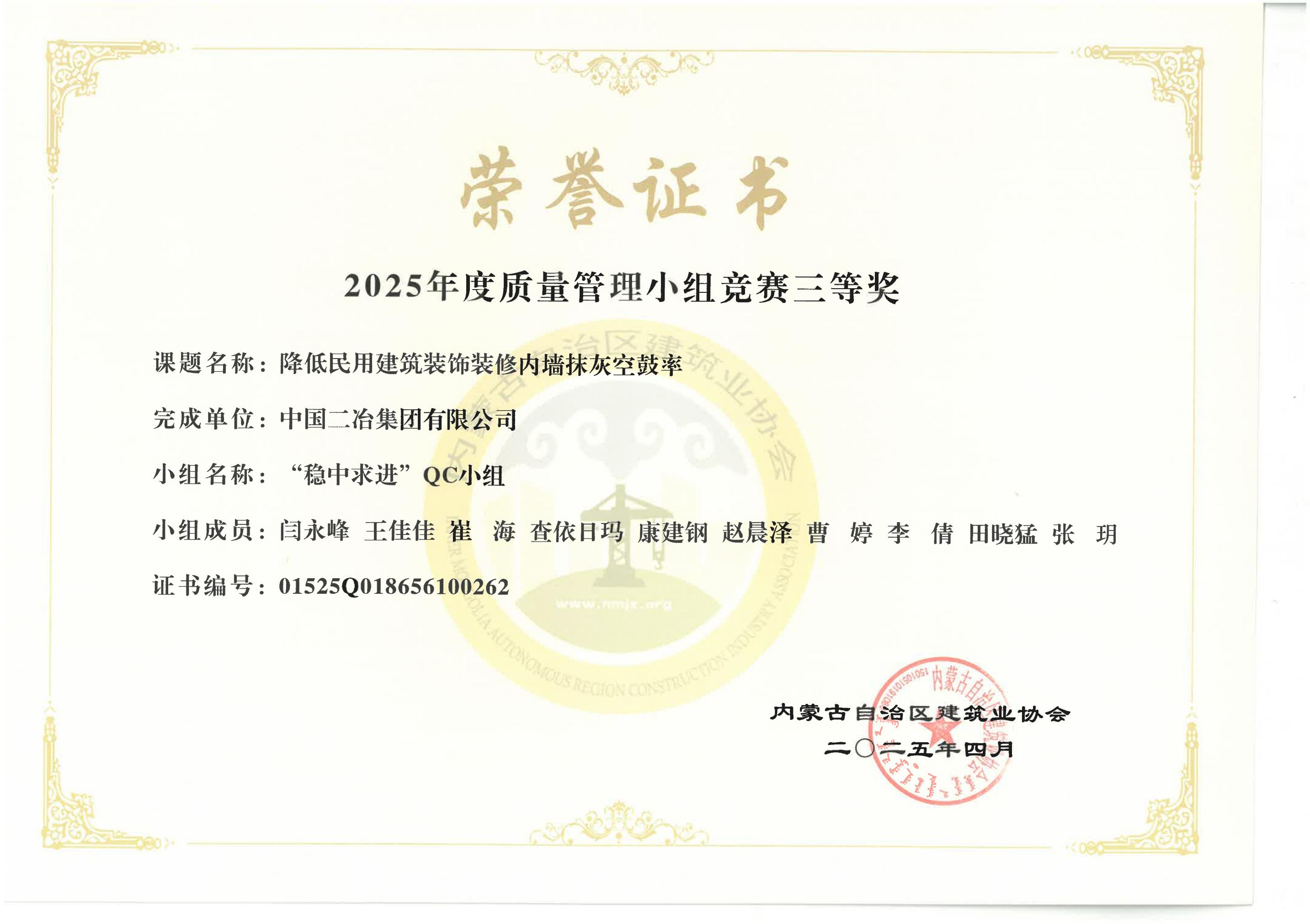 市政分公司三篇QC成果在內蒙古自治區質量管理小組競賽中獲獎
