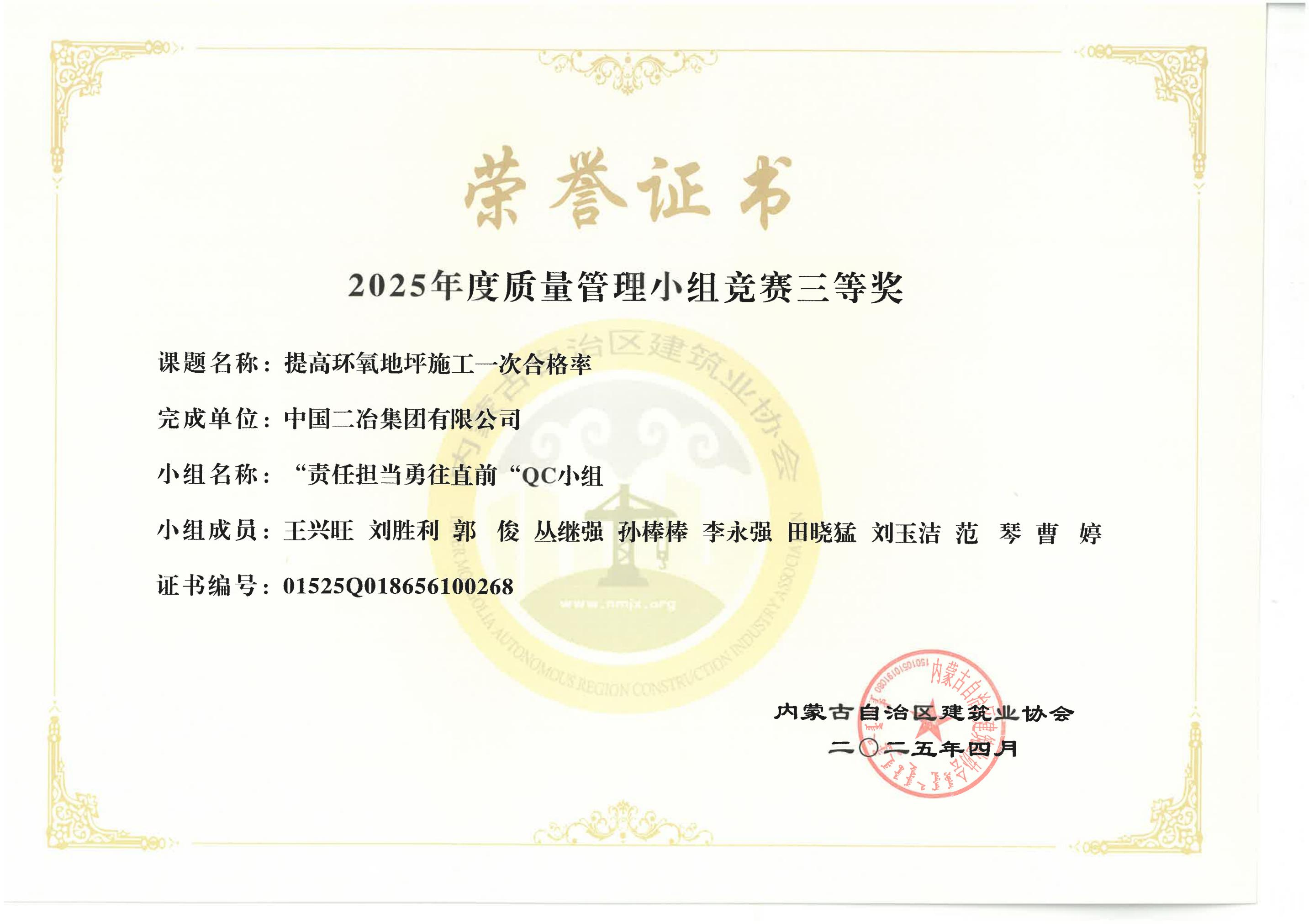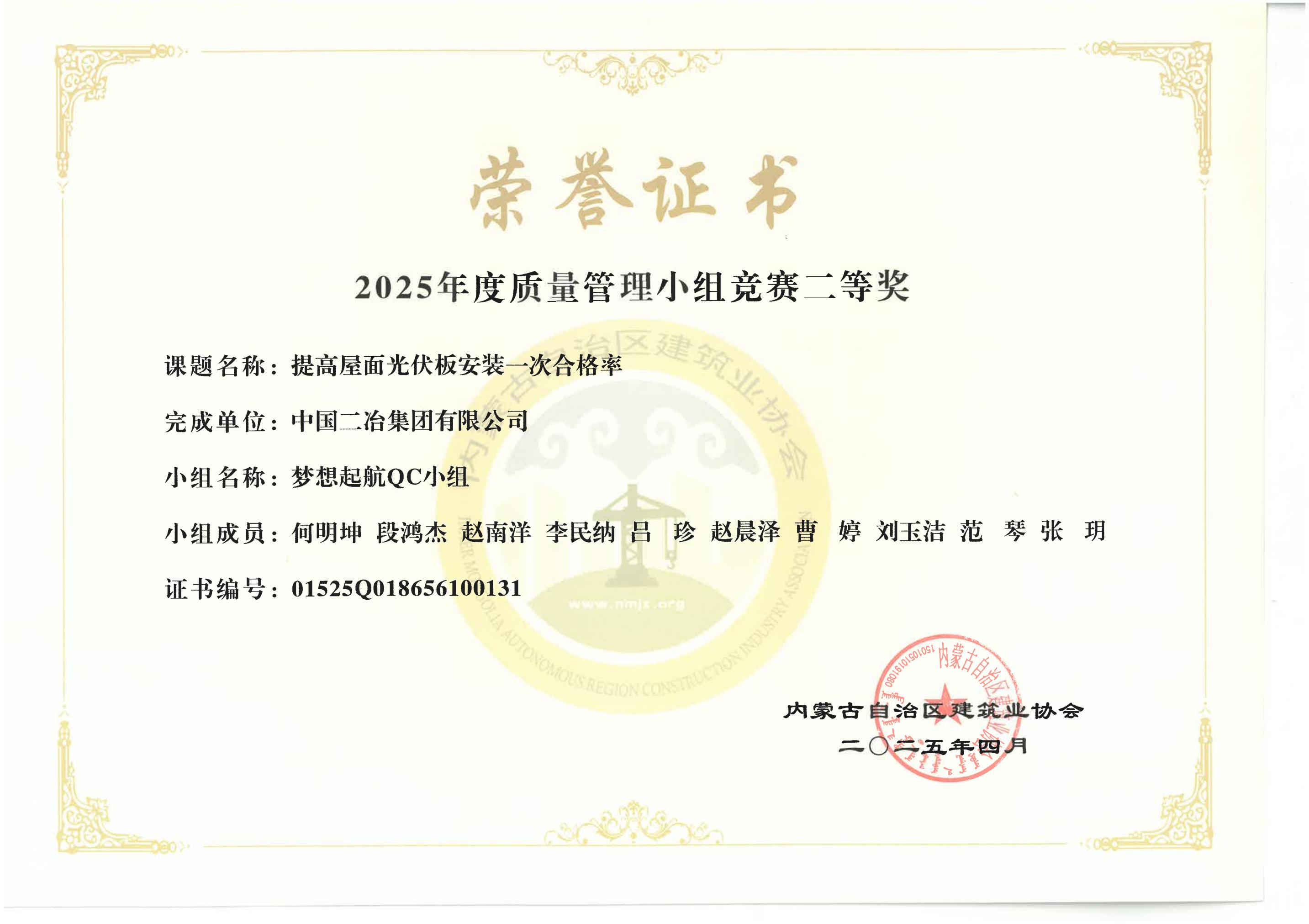 近日,內蒙古自治區建筑業協會舉辦的質量管理小組競賽中,市政分公司《提高屋面光伏板安裝一次合格率》榮獲二等獎,《降低民用建筑裝飾裝修內墻抹灰空鼓率》、《提高環氧地坪施工一次合格率》榮獲三等獎