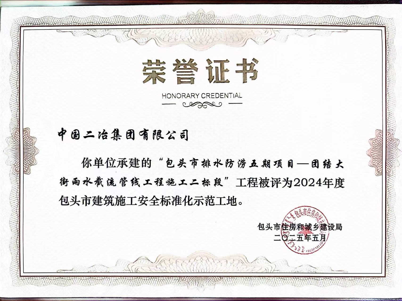 近日,包頭市住房和城鄉(xiāng)建設(shè)局公布2024年度市級(jí)標(biāo)準(zhǔn)化工地評(píng)選結(jié)果,由市政分公司承建的包頭市排水防澇五期項(xiàng)目——團(tuán)結(jié)大街雨水截流管線工程施工二標(biāo)段項(xiàng)目憑借高標(biāo)準(zhǔn)的安全文明施工、精細(xì)化的工程管理和綠色環(huán)保的施工理念,成功獲評(píng)“包頭市建筑施工安全標(biāo)準(zhǔn)化示范工地”稱號(hào),成為分公司標(biāo)準(zhǔn)化建設(shè)的標(biāo)桿項(xiàng)目。