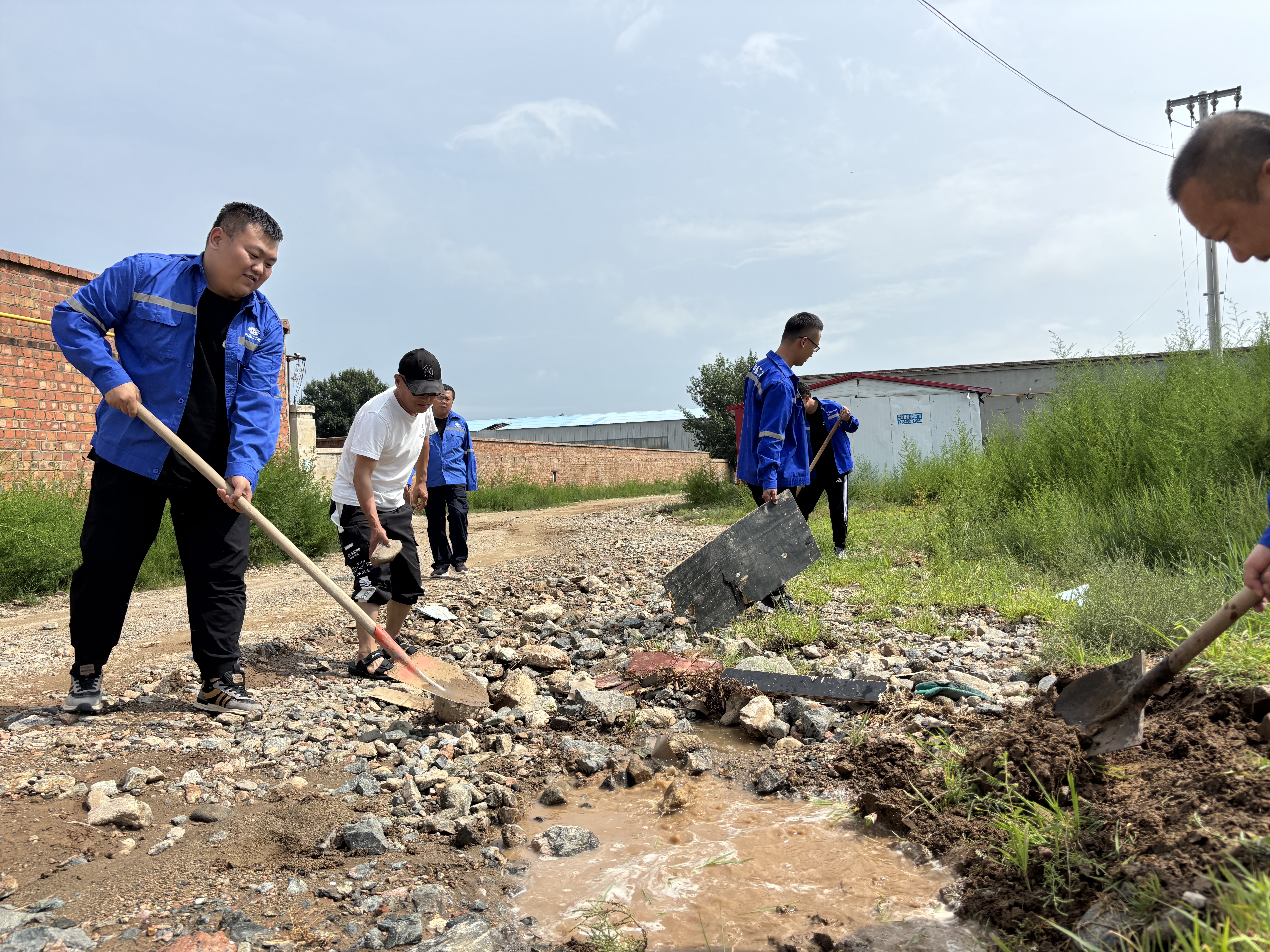 “哪里有危險,哪里就有黨員突擊隊身影”。連日來,面對包頭地區強降雨,項目部巡查組、黨員突擊隊沖鋒在前,每天派專人檢查項目現場臨時用電、四周道路狀況,發現險情立即報告防汛領導小組進行整改。7月23日凌晨3點,包頭地區再次狂風肆虐、暴雨滂沱,項目部黨員身披雨衣,依舊堅守在一線,對施工現場各危險區域進行巡查,當黨員們深入烏蘭計六村時,發現道路嚴重破損,影響居民出行,項目部防災防汛領導小組立即與周邊居民溝通并獲得支持,組織黨員突擊隊對道路進行了全面的修繕工作。從場地平整、模板安裝到混凝土澆筑、路面拉毛,每一道工序都凝聚了項目部的辛勤付出,平坦的道路得到了過路村民的一致好評,烏蘭計六村村委會對項目部的辛勤付出送上了衷心感謝。