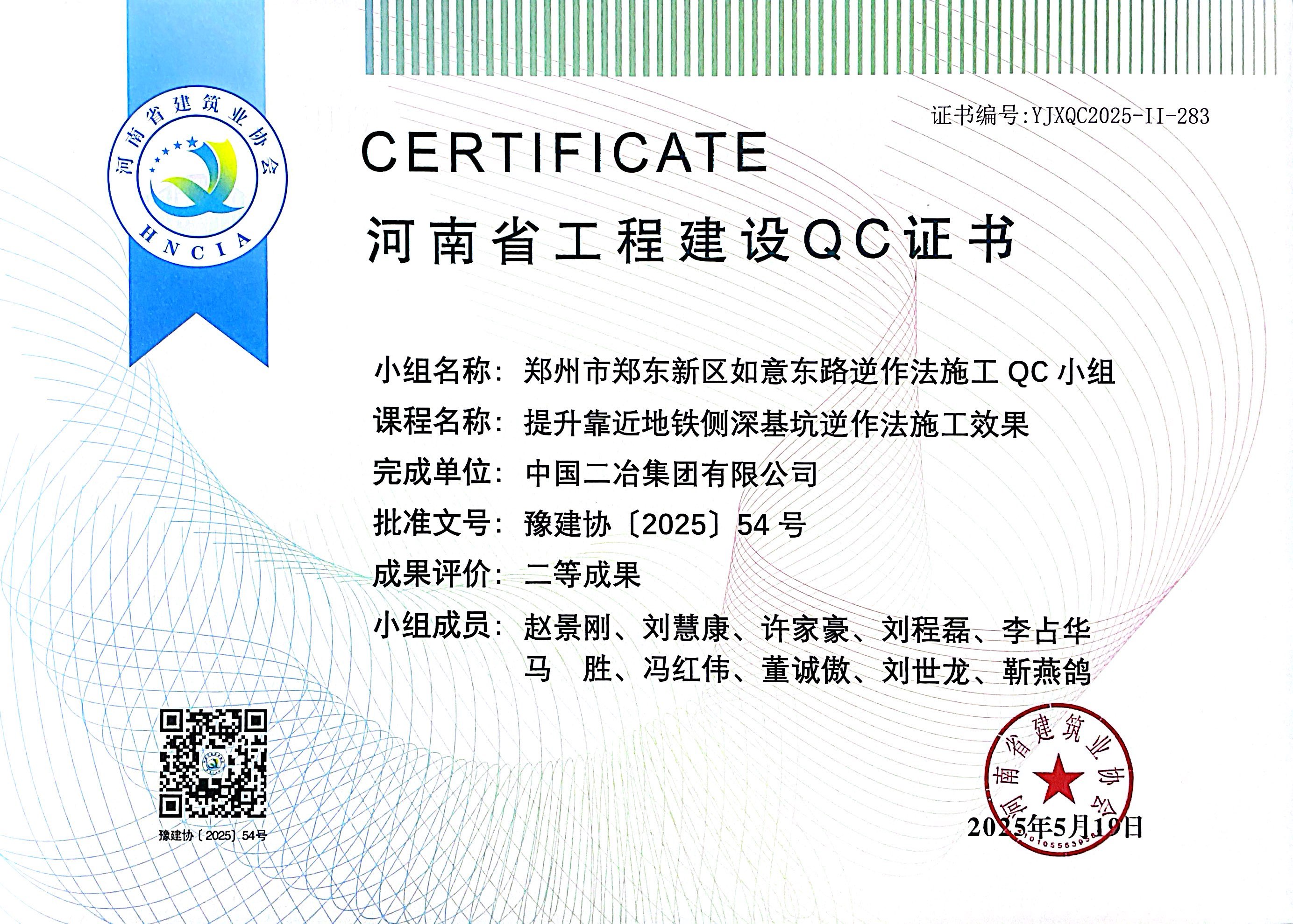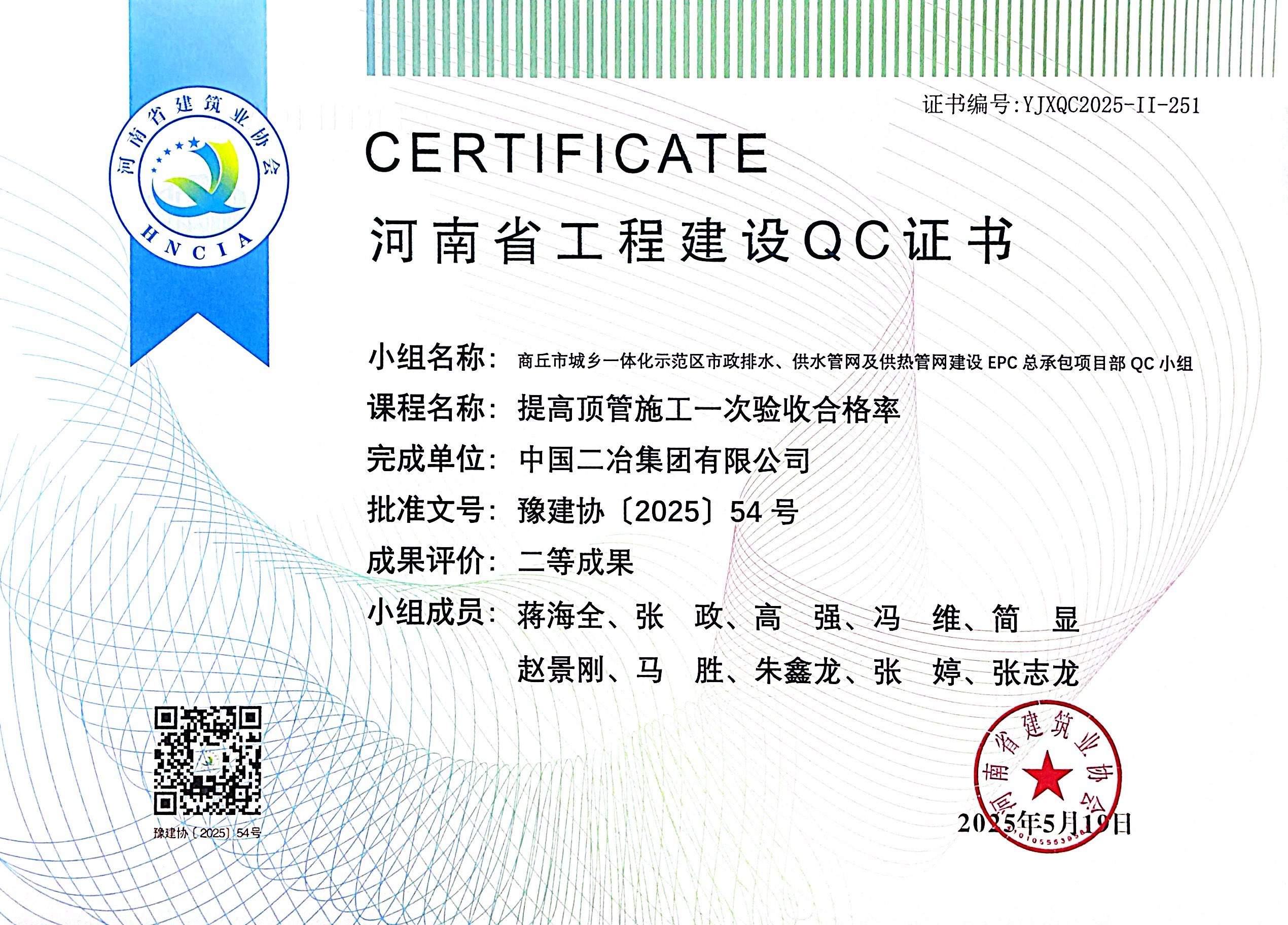 近日,省建協(xié)公布了2025年河南省工程建設(shè)質(zhì)量管理小組活動成果評價(QC評價)結(jié)果,中國二冶集團(tuán)中原分公司申報的《提高頂管施工一次驗(yàn)收合格率》《提升靠近地鐵側(cè)深基坑逆作法施工效果》《提高建筑物木結(jié)構(gòu)施工質(zhì)量驗(yàn)收一次合格率》榮獲二等成果評價。