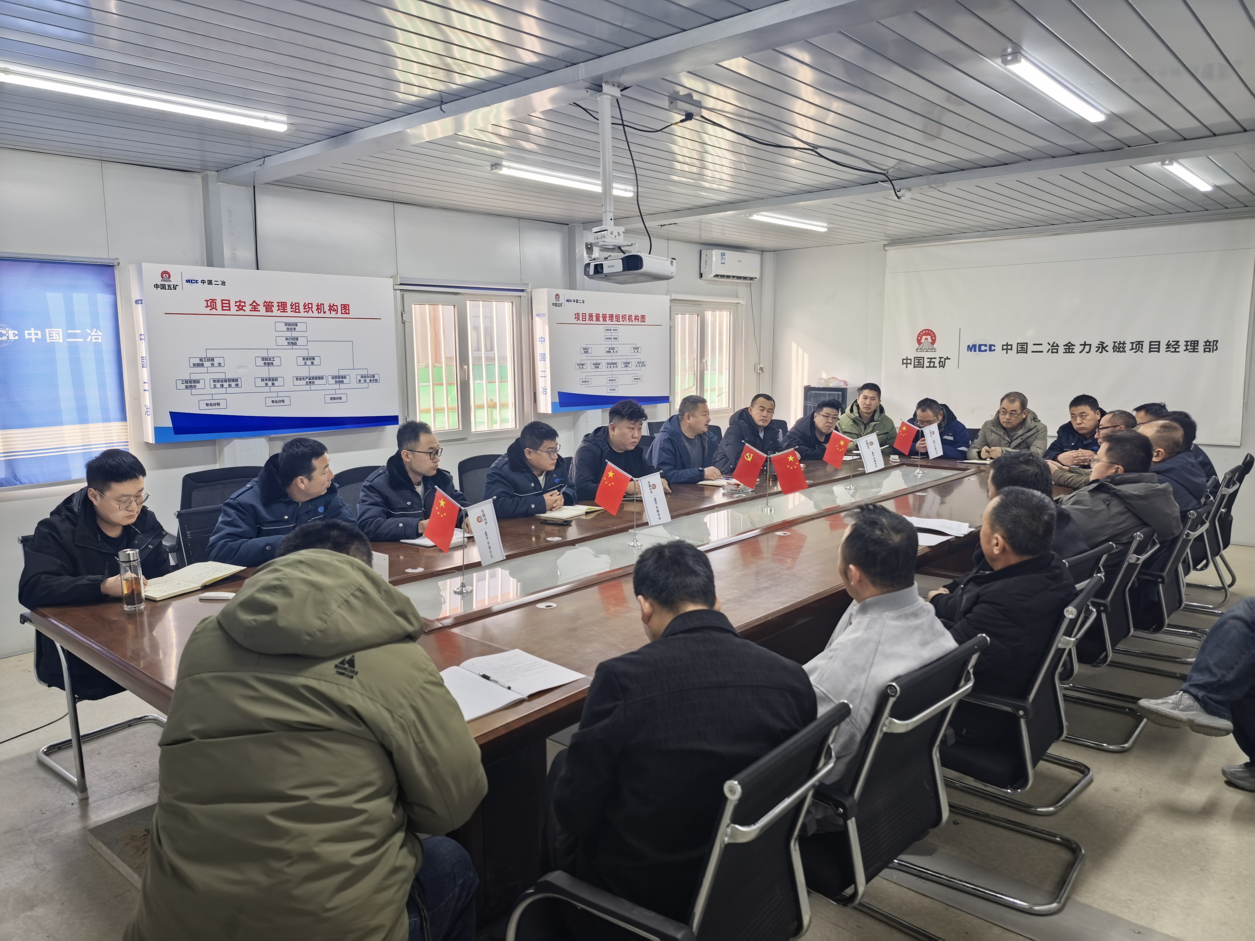2月26日,金力永磁項目部召開復工復產動員會,全體管理人員及分包單位負責人參會。會議傳達學習了上級關于復工復產及安全生產的工作要求,通報了節前值班值守和隱患排查情況。會議強調,要堅決克服麻痹思想,嚴格落實安全生產主體責任,重點抓好腳手架、深基坑、臨時用電等關鍵環節的隱患排查治理。同時,針對農民工工資問題,會議要求進一步完善實名制管理和工資支付保障制度,切實維護農民工合法權益。