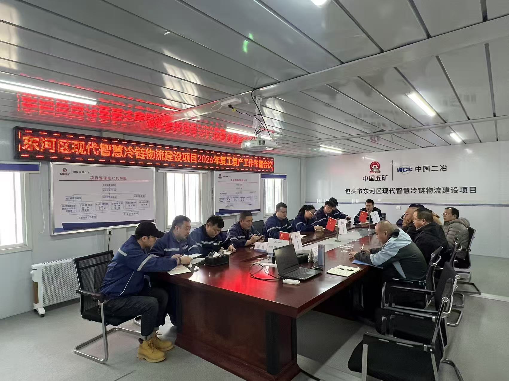 2月27日,東河冷鏈項目部組織召開節后復工復產動員大會,集中開展復工復產“開工第一課”,深入學習“六個一”工作要求,并對高風險作業、特種設備、消防管理等環節進行重點部署。會議提出五項重點任務:一是從嚴抓實安全復工條件,不達標絕不復工;二是強化全員安全教育培訓;三是科學統籌施工組織,倒排工期、掛圖作戰;四是嚴守工程質量標準;五是壓實層級管理責任,確保各項部署落地見效。