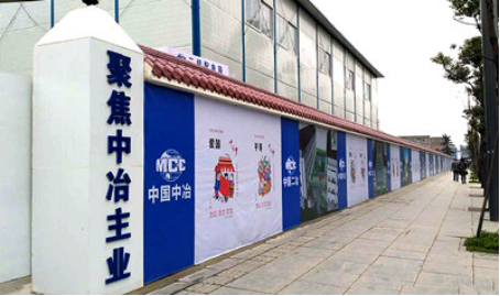 順著茶店子橫街一路走向施工現場,首先映入眼簾的是五百多米的施工外圍墻,圍墻上中冶文化與中國二冶集團簡介、項目管理體系、業務體系、企業資質和業績等內容互相交替,同時融入了社會主義核心價值觀和項目效果圖,墻頭上覆蓋著棕紅色的琉璃瓦,整個圍墻既規范整齊,又古樸典雅,做到了成都古城風韻、新二十中學民國風格和中國二冶集團企業文化的完美結合,充分展現了中國二冶集團作為央企的社會責任,成為成都街頭一道獨特而又靚麗的風景,常引得路人駐足觀看。