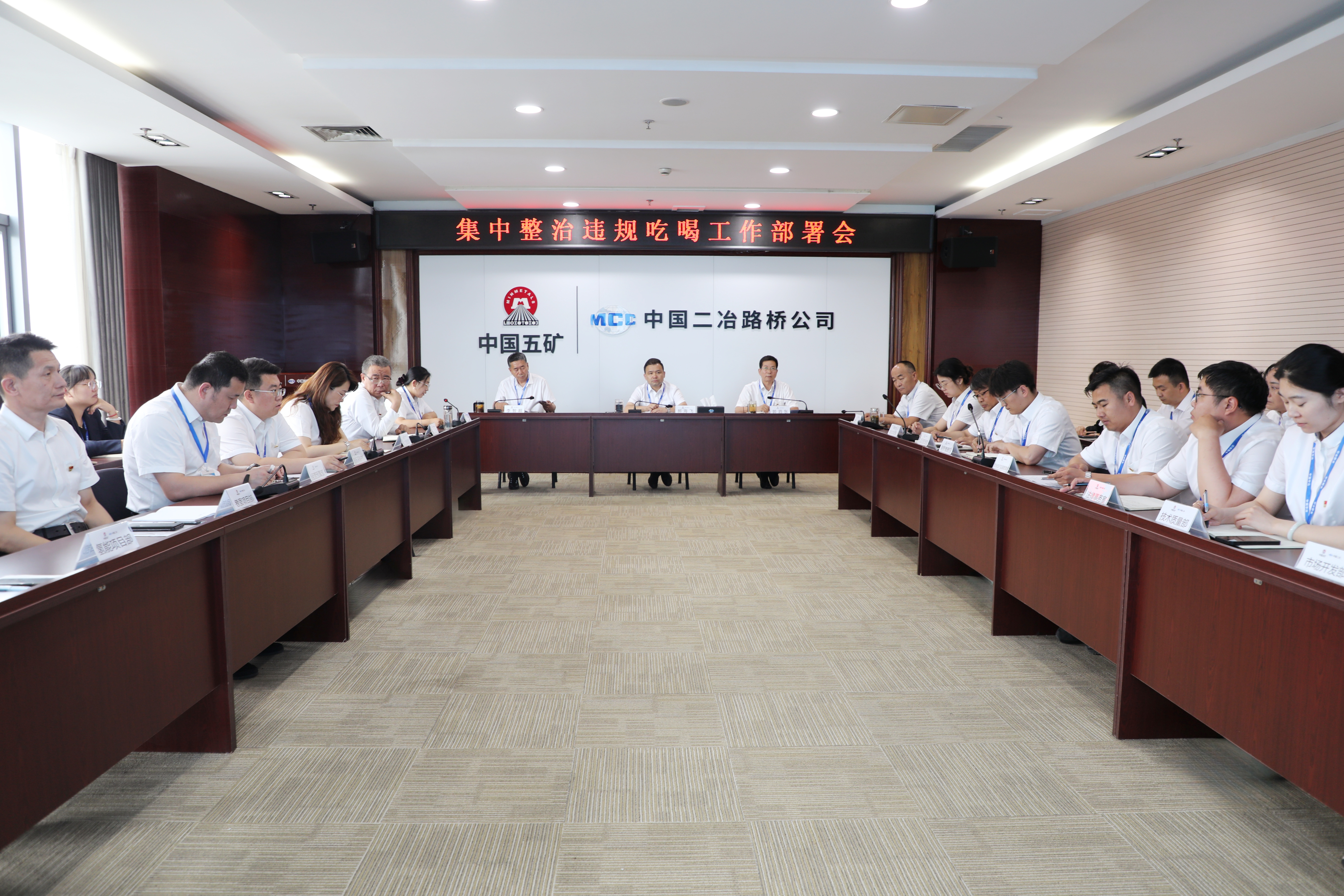 分公司領導班子,機關職能部室負責人,市場、經營、物資、財務系統全體人員;各分公司領導班子、各項目部領導班子,項目部各部門負責人,經營、物資、財務系統全體人員及相關工作人員等分別在主、分會場參會。