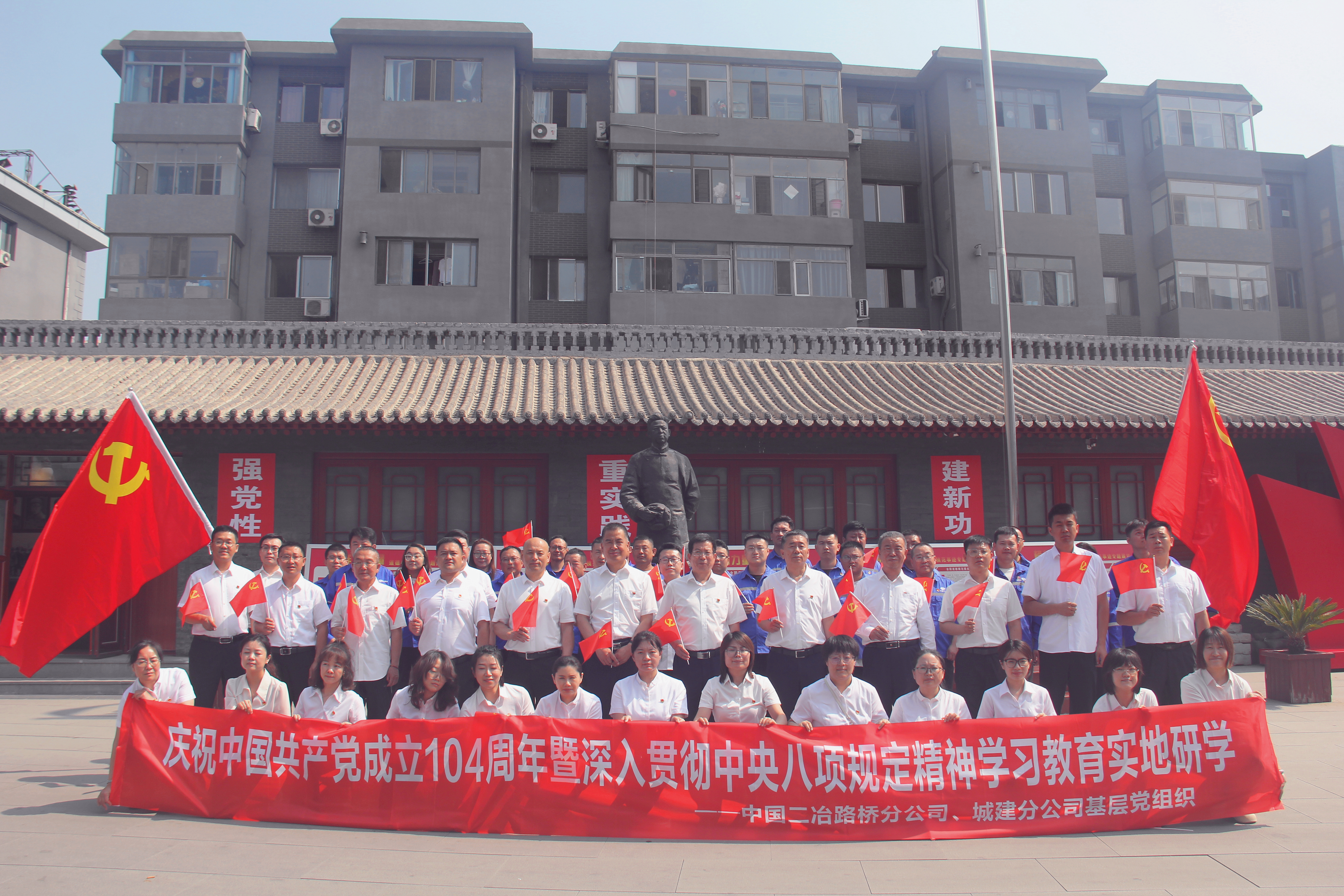 為慶祝中國共產黨成立104周年,弘揚廉潔文化,深入貫徹中央八項規定精神學習教育,6月29日,中國二冶路橋分公司在包基層黨組織、城建分公司在包基層黨組織共計80余人前往包頭市廉潔文化主題公園和王若飛紀念館成功舉辦“偉大建黨精神引航向 廉潔教育固初心”聯建共建活動。