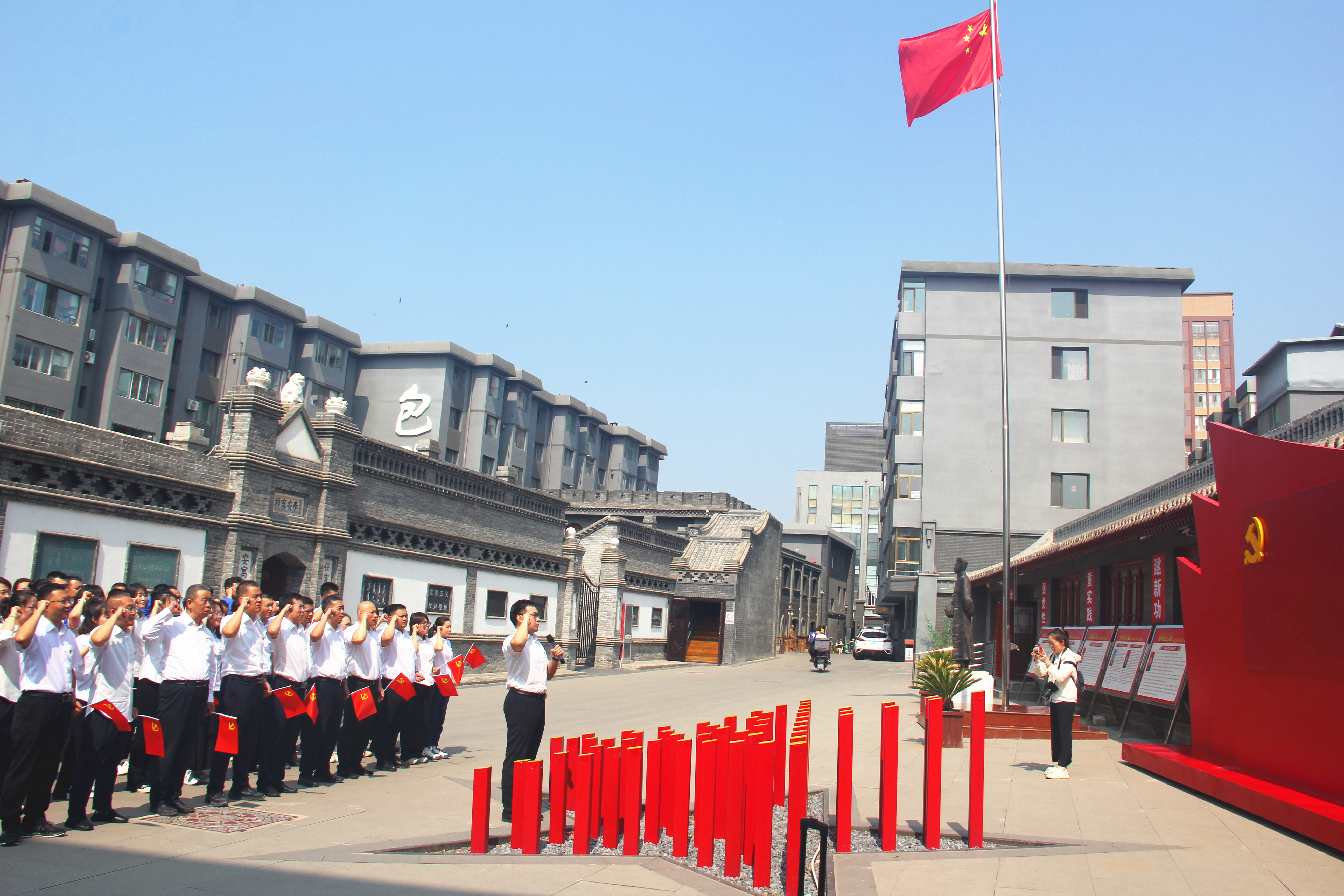 活動隊伍隨后抵達革命圣地——王若飛紀念館。在莊嚴肅穆的紀念館前,全體黨員面對鮮紅的黨旗,高舉右拳,重溫入黨誓詞。錚錚誓言響徹云霄,字字千鈞叩擊心靈,回溯了入黨時的初心,更加堅定了為共產主義事業奮斗終身的理想信念。步入展廳,黨員們懷著崇敬的心情,通過珍貴的史料和文物,認真追尋王若飛同志的光輝足跡,深刻感悟老一輩無產階級革命家堅定的理想信念、崇高的革命精神、無私的奉獻情懷以及廉潔自律的高尚風范。觀看紅色影片《為正義辯護》片段,激勵著大家從紅色基因中汲取砥礪前行的不竭力量。