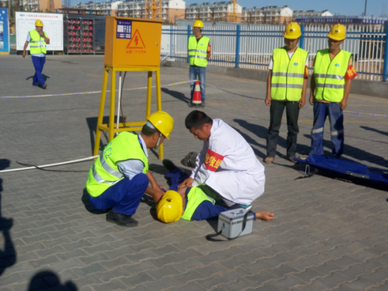 正當(dāng)此時(shí),我的思緒和注意力被120救護(hù)車的鳴叫聲,一支身著帶有中國(guó)二冶標(biāo)識(shí)中冶藍(lán)工作服,雄赳赳氣昂昂的隊(duì)伍吸引,只見他們熟練地依次將手中的警戒線,警示樁放好,對(duì)事故發(fā)生區(qū)域進(jìn)行了警戒隔離。搶救組隨即進(jìn)入現(xiàn)場(chǎng),對(duì)傷者進(jìn)行檢查搶救。救護(hù)車及時(shí)趕到,專業(yè)人員對(duì)傷者做了簡(jiǎn)單的心肺復(fù)蘇搶救,傷者恢復(fù)意識(shí)。搶救組配合醫(yī)務(wù)人員將傷者抬上救護(hù)車,送往醫(yī)院。一場(chǎng)驚心動(dòng)魄的救援讓我那顆不安全的心徹底放下了。