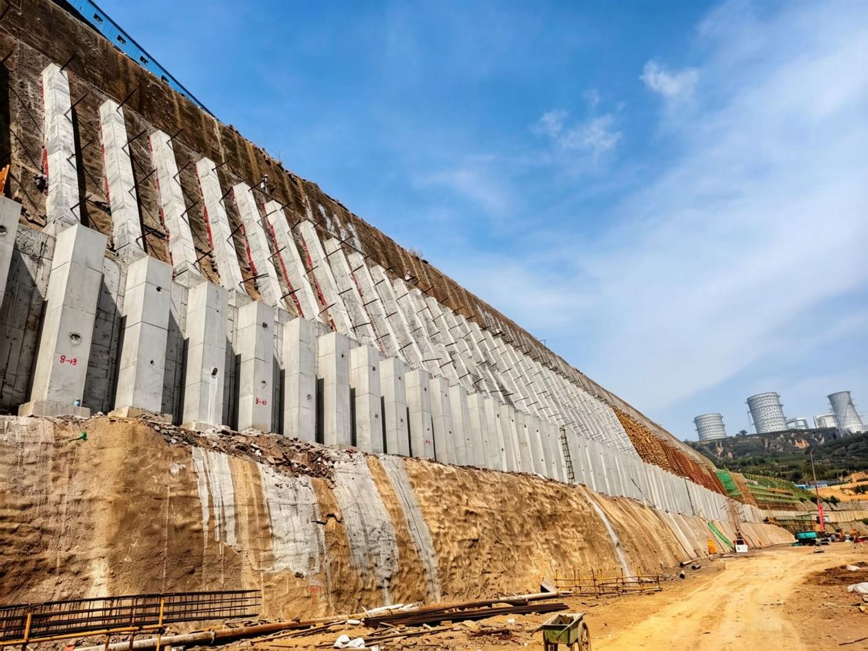 該項(xiàng)目位于甘肅省慶陽市正寧縣周家鎮(zhèn)核桃峪煤礦,項(xiàng)目包括抗滑樁、擋土板、肋柱、地基梁及壓頂梁、混凝土面層、錨(桿)索、排水系統(tǒng)、圍墻、自動化監(jiān)測等工程,主要包含293根抗滑樁、7867m3背填混凝土、8800㎡噴錨支護(hù)、127套自動化監(jiān)測設(shè)備。施工過程中,項(xiàng)目部面對工期緊、任務(wù)重、施工組織難度大等諸多困難,科學(xué)統(tǒng)籌資源配置,持續(xù)優(yōu)化施工方案,推動各作業(yè)面同步發(fā)力、壓茬推進(jìn)。截至目前,一級邊坡錨索工程完成115根,占總量16%;二級邊坡肋柱工程完成53根,占總量18%;三、四級邊坡錨桿工程完成1568根,占總量54%,項(xiàng)目建設(shè)呈現(xiàn)出加速推進(jìn)的良好態(tài)勢。