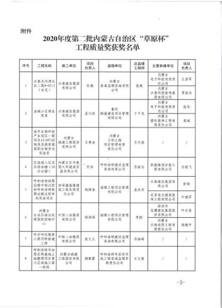 近日,內蒙古自治區住房和城鄉建設廳官網公示2020年度內蒙古自治區“草原杯”工程質量獎名單,中國二冶內蒙古分公司承建的內蒙古自治區綜合疾病預防與控制中心項目、呼市呼倫路跨小黑河橋同時榮獲2020年度第二批內蒙古自治區“草原杯”工程質量獎。