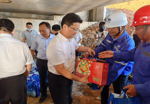 7月26日下午,永州市委副書(shū)記、市長(zhǎng)陳愛(ài)林深入中國(guó)二冶濱江新城康養(yǎng)綜合體項(xiàng)目湘江東路建設(shè)工地開(kāi)展“送清涼”活動(dòng),走訪慰問(wèn)一線施工人員,為他們送去解暑物資,并致以親切問(wèn)候。永州市人大常委會(huì)副主任、市總工會(huì)主席胡先榮,市政府秘書(shū)長(zhǎng)齊愛(ài)社參加。