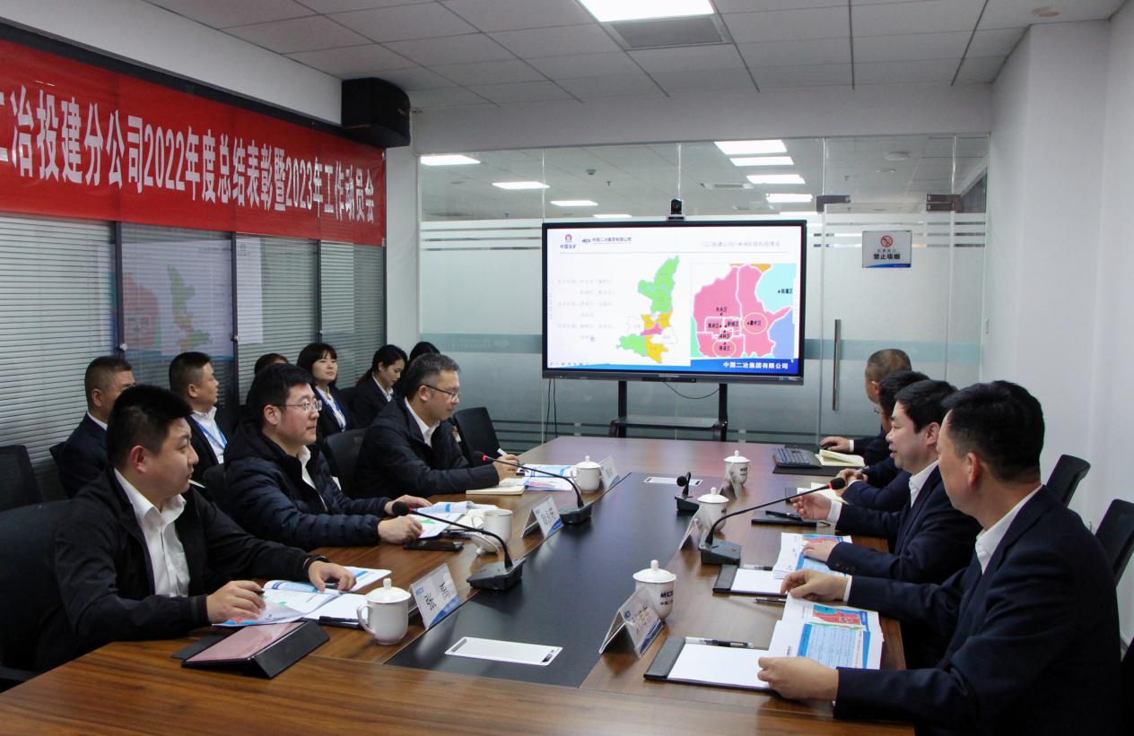 在投建分公司調研工作時,耿永旺首先聽取了投建分公司總經理郭軍關于分公司2022年主要指標完成情況、工程履約相關情況、重點區域市場及跟蹤重點項目情況、黨建工作開展情況、2023年主要指標計劃安排及重點工作部署、分公司未來三年發展規劃等方面的工作匯報。