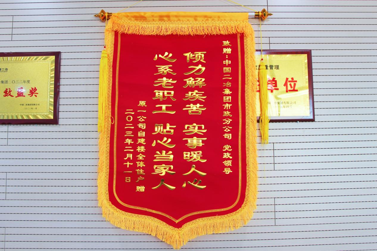 2月24日,中國二冶收到昆區鋼32#街坊全體住戶送來的錦旗和感謝信,對中國二冶市政分公司高度重視、積極作為,以實際行動切實解決鋼32#街坊自建樓產權辦理等問題表示高度贊揚和感謝。
