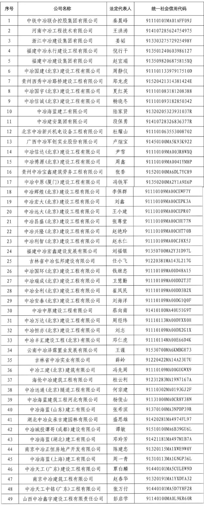 經我公司核實,以下企業(第一批名單)名稱中包含“中冶”字樣的公司及其下設各級子公司均與我公司無任何隸屬或股權關系,其一切行為均與我公司無關。