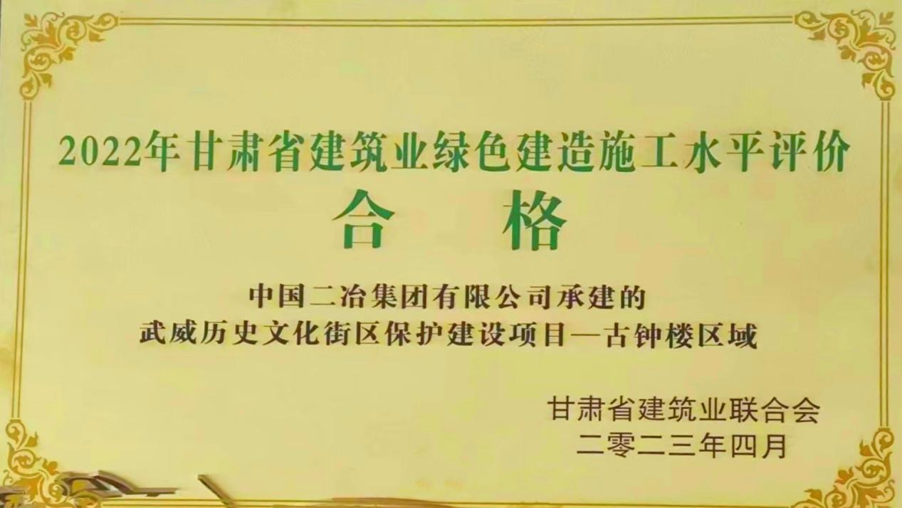 4月25日,甘肅省建筑業聯合會公布2022年甘肅省建筑工程文明工地、綠色建造施工水平評價合格項目評選結果,中國二冶承建的武威歷史文化街區保護建設項目榮獲2022年度甘肅省級文明工地及省級綠色建造工地榮譽稱號。