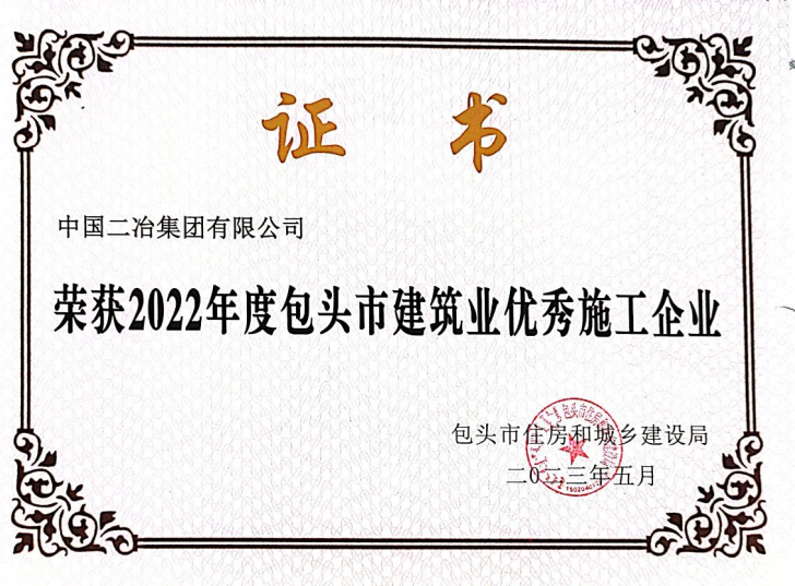 5月27日,包頭建筑業(yè)協(xié)會召開三屆四次會員大會,對包頭市優(yōu)秀建筑企業(yè)進(jìn)行表彰。中國二冶榮獲2022年度包頭市建筑業(yè)優(yōu)秀施工企業(yè)、包頭市建設(shè)工程安全管理優(yōu)秀企業(yè)及包頭建筑業(yè)協(xié)會優(yōu)秀會員單位三項榮譽。同時,公司職工田忠剛、李志剛、張磊、江井峰、董偉偉獲評2022年度包頭市優(yōu)秀建造師。