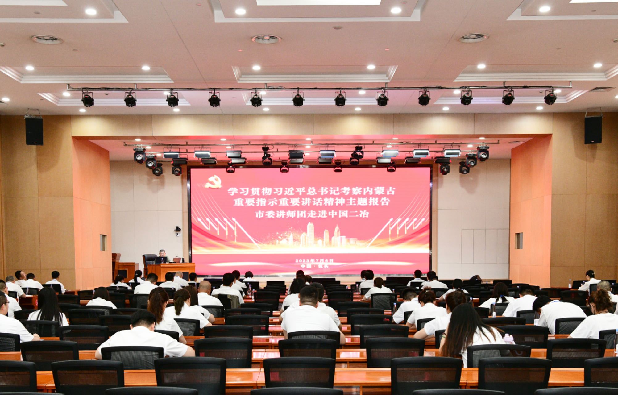 7月6日,包頭市委宣傳部、講師團走進中國二冶,作“學習貫徹習近平總書記考察內蒙古重要指示重要講話精神”主題報告。