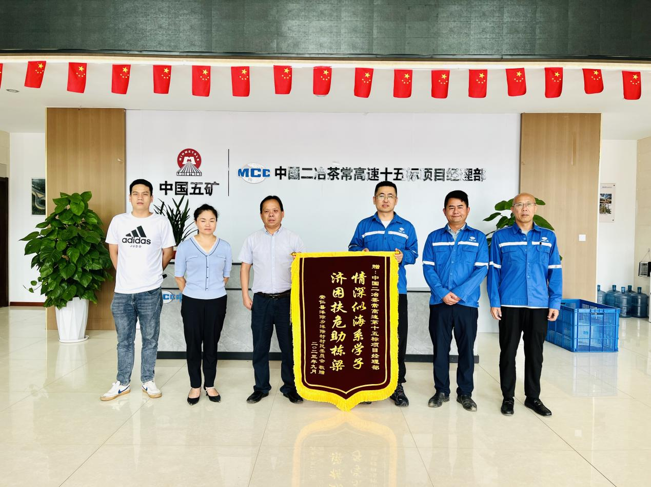 9月20日,中國二冶茶常高速第15合同段項目部收到安仁縣洋際村送來的“濟困扶危助棟梁,情深似海系學子”錦旗對項目部助力鄉村教育事業表示衷心感謝。