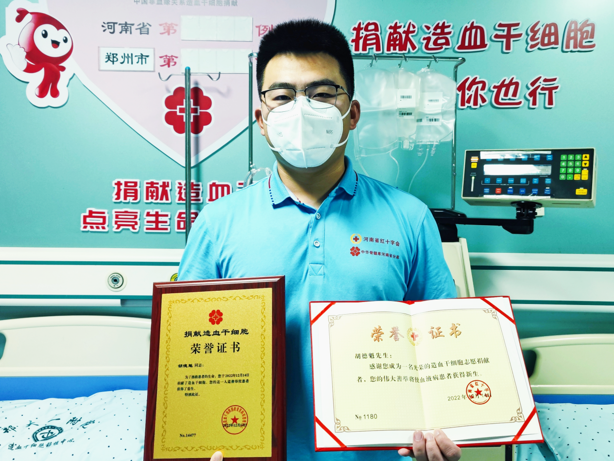 曾是軍人的胡德魁在退伍后一直堅(jiān)持無(wú)償獻(xiàn)血。從2019年開(kāi)始,胡德魁已經(jīng)累計(jì)獻(xiàn)血18次,共計(jì)6800ml。2021年1月,在一次獻(xiàn)血過(guò)程中,胡德魁第一次接觸到造血干細(xì)胞捐獻(xiàn),在向工作人員充分了解后,他主動(dòng)留下血樣,志愿加入中華骨髓庫(kù)。去年8月,正在工作的胡德魁接到了配型成功的電話,在確認(rèn)捐獻(xiàn)日期后,胡德魁堅(jiān)持運(yùn)動(dòng),保持清淡飲食和良好的作息,為捐獻(xiàn)做好準(zhǔn)備,最終于去年12月捐獻(xiàn)成功。