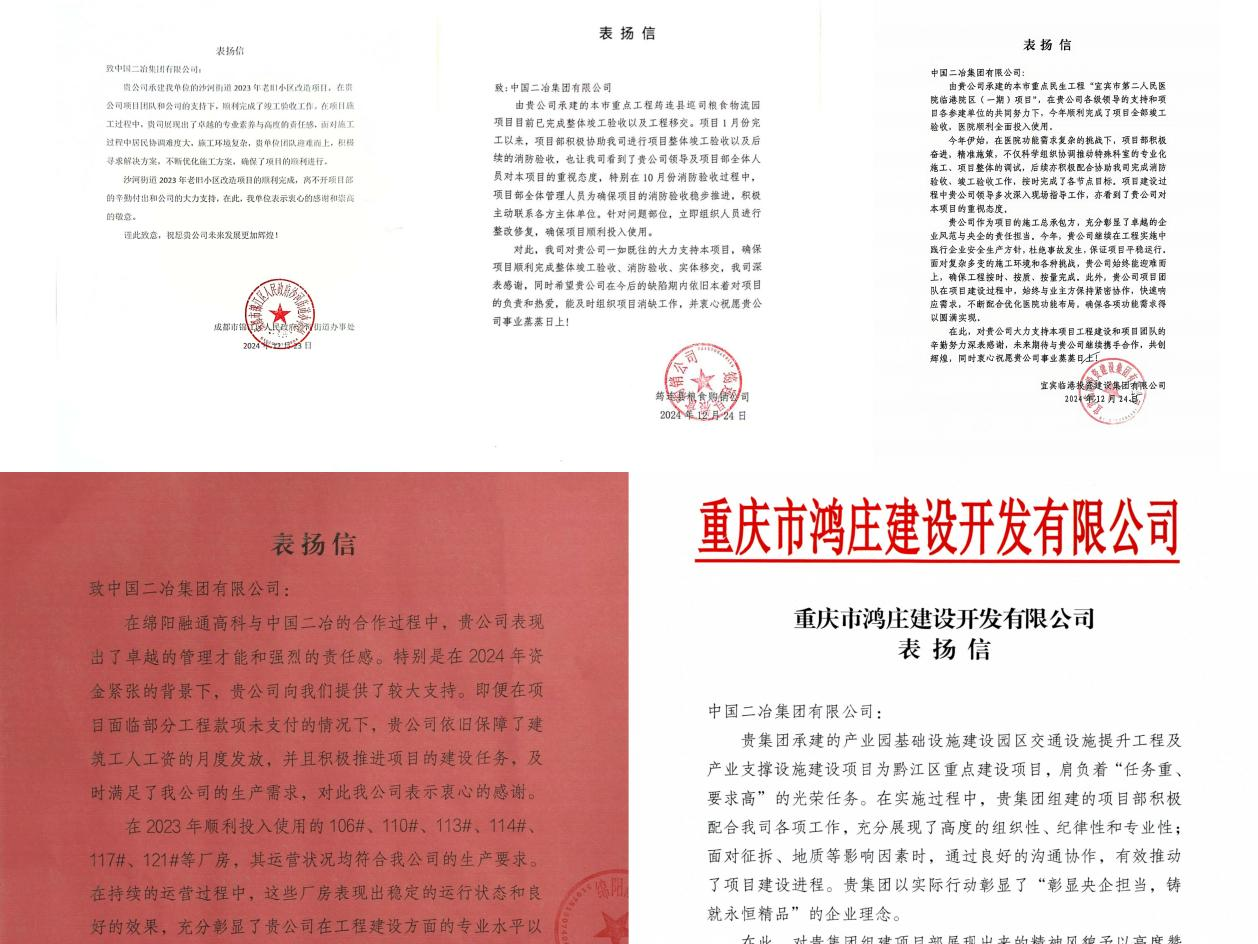 這一封封表揚信,不僅是對中國二冶優質高效地推進各項工作的充分肯定,更是對項目管理團隊優良作風的認可。接下來,各項目管理團隊將持續用行動踐行初心使命,切實做好各項目后續工作,為地方經濟貢獻央企力量。
