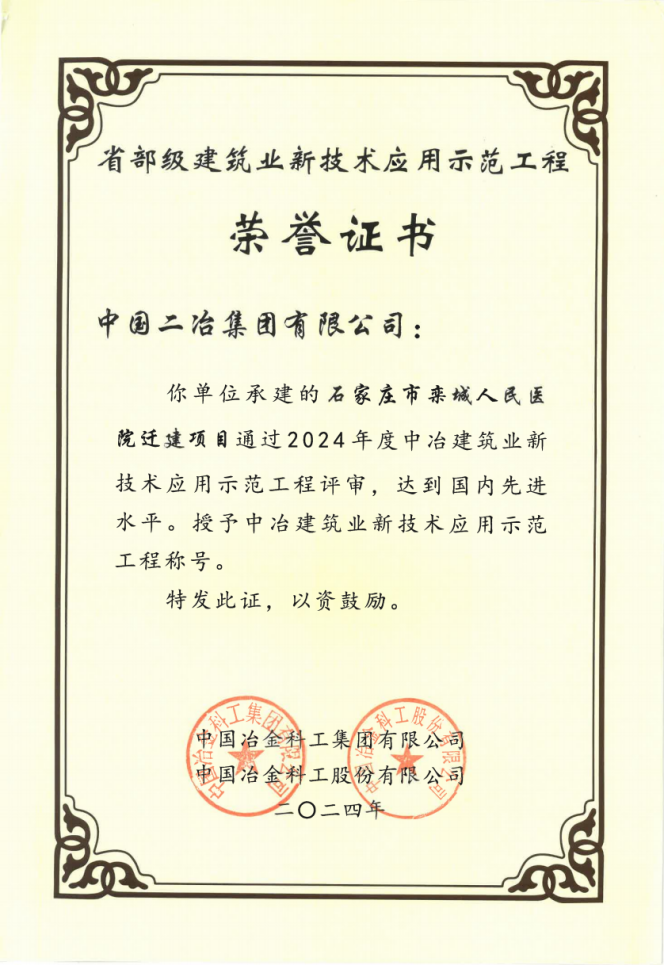 中國二冶三個項目獲評中冶建筑業新技術應用示范工程