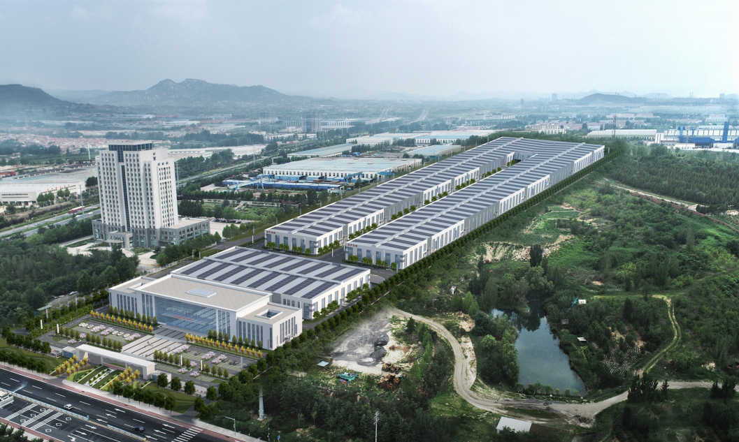 該項目位于山東省濟南市鋼城經濟開發(fā)區(qū)。總規(guī)劃用地面積11.7萬平米,一期1#廠房總建筑面積10.4萬平米,容積率1.19,建筑系數16.19%,綠地率6.88%。