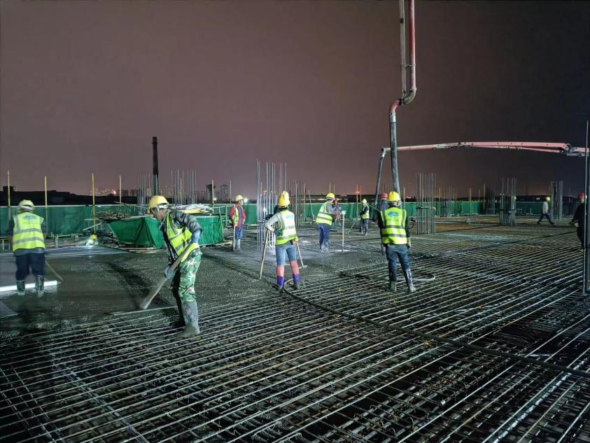 夜晚,山寒水冷,走進(jìn)資陽騮馬新村安置房項(xiàng)目,只見塔吊林立,大型挖掘機(jī)正在開挖作業(yè),建筑工人在工作崗位上緊張忙碌,綁扎鋼筋、支設(shè)木板,現(xiàn)場(chǎng)一片熱火朝天的景象。該項(xiàng)目全體人員充分發(fā)揮迎難攻堅(jiān)精神,不等不靠,對(duì)照總體工期安排和當(dāng)前施工進(jìn)度,科學(xué)倒排工期,嚴(yán)格節(jié)點(diǎn)管理,強(qiáng)化人員分工。在確保項(xiàng)目安全質(zhì)量的同時(shí),抓住夜間人員稀少、交通流量小的良好機(jī)會(huì),抓緊組織人員,展開對(duì)急難險(xiǎn)重任務(wù)的突擊作業(yè),確保每個(gè)作業(yè)面“飽和式”施工。分公司領(lǐng)導(dǎo)班子成員帶頭下沉至一線,實(shí)時(shí)管控現(xiàn)場(chǎng)進(jìn)度,確保天天有進(jìn)展、周周有變化。機(jī)關(guān)各部室則成立現(xiàn)場(chǎng)督導(dǎo)檢查小組,聚焦施工一線,總結(jié)現(xiàn)場(chǎng)進(jìn)展,解決實(shí)際問題,梳理剩余任務(wù),為施工生產(chǎn)保駕護(hù)航。