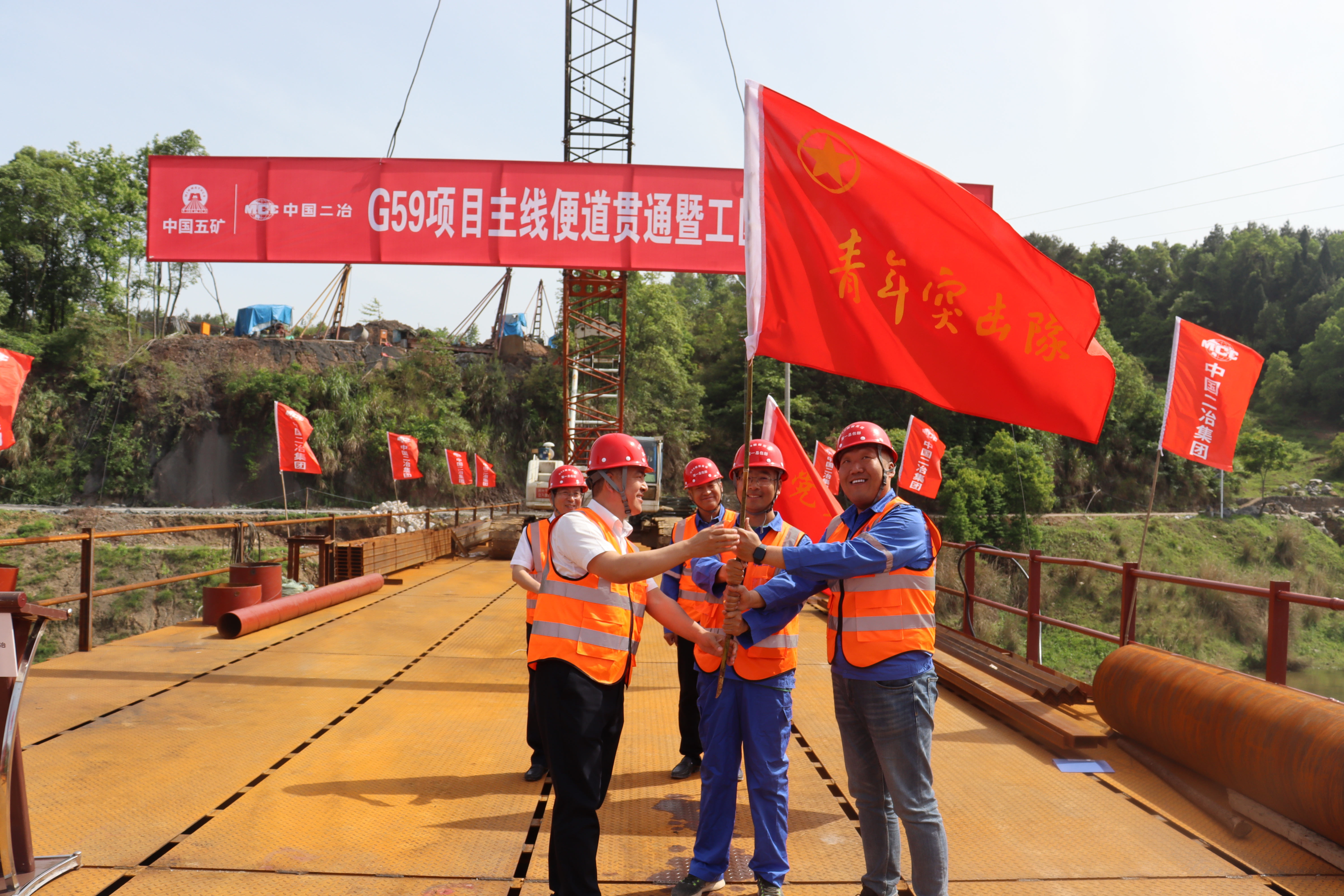 4月30日,路橋分公司G59新新高速項目“主線便道貫通暨工區對手賽”啟動儀式暨企業開放日活動在赧水特大橋鋼棧橋上舉行。分公司黨委書記郭泗東、總會計師王文通及分公司副總經理兼G59項目部經理張勇參加啟動儀式。業主單位、監理單位、分包單位、政府代表及多家主流媒體記者共計70余人參加活動。