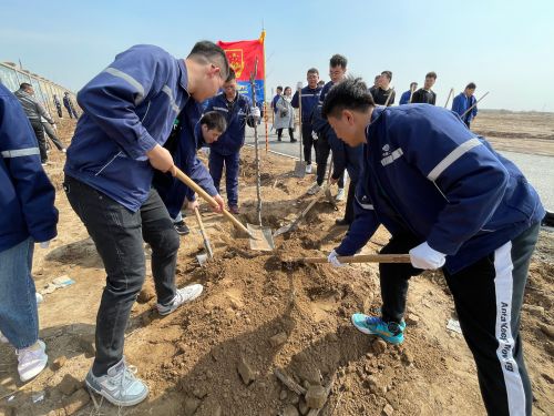 青年朋友們認(rèn)真聆聽工人師傅講解植樹方法步驟和注意事項(xiàng)后,帶上鐵鍬和種植工具,井然有序地開始樹苗種植。活動(dòng)現(xiàn)場,大家植樹造林的熱情十分高漲,有的奮力揮鍬挖坑填土,有的扶苗踩實(shí),分工協(xié)作,密切配合,個(gè)個(gè)忙的滿頭大汗,干得熱火朝天。經(jīng)過一番忙碌的勞動(dòng),一排排新栽樹苗在春日里迎風(fēng)挺立,為大地增添了一抹生機(jī)。