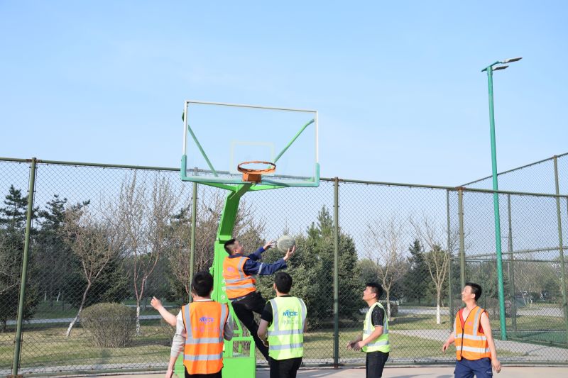 城建分公司商務(wù)大廈項(xiàng)目部現(xiàn)有團(tuán)員青年13名,占項(xiàng)目在崗職工總數(shù)的65%。其中黨員7名,占團(tuán)員青年總數(shù)的54%。項(xiàng)目部團(tuán)支部自2019年成立后,緊扣黨建帶團(tuán)建,黨有號(hào)召團(tuán)有行動(dòng)的號(hào)令,團(tuán)員青年、青年黨員沖鋒在施工一線,闖關(guān)奪隘,在商務(wù)大廈、都市庭苑項(xiàng)目疫情防控、奮戰(zhàn)120天勞動(dòng)競(jìng)賽中完成了多項(xiàng)施工節(jié)點(diǎn),青年黨員、團(tuán)員青年在施工中冒強(qiáng)風(fēng)頂暴雨,戰(zhàn)晴天斗嚴(yán)寒,晝夜奮戰(zhàn),團(tuán)員青年壓力大工作環(huán)境極其艱苦,為了緩解團(tuán)員的壓力,調(diào)動(dòng)黨員、團(tuán)員青年的積極性,項(xiàng)目部以“學(xué)黨史、悟思想、辦實(shí)事”為主線,由團(tuán)支部組織,展開(kāi)籃球?qū)κ仲悺;顒?dòng)伊始,團(tuán)支部書(shū)記詳細(xì)介紹了本次半場(chǎng)籃球比賽的規(guī)則,全程實(shí)行記分制,進(jìn)球一顆得一分,不進(jìn)球不得分,最先達(dá)到5分獲勝。4月22日下午5點(diǎn)30分,活動(dòng)首先通過(guò)轉(zhuǎn)球形式分為兩隊(duì),兩隊(duì)隊(duì)員摩拳擦掌,躍躍欲試,兩隊(duì)緊盯裁判哨聲和籃球,只聽(tīng)哨聲一響,籃球飛躍空中,兩隊(duì)隊(duì)員奮力拼殺搶球,拉開(kāi)了籃球?qū)κ仲悾局颜x第一比賽第二的賽事原則,隊(duì)員們密切配合,一個(gè)眼神一個(gè)傳球動(dòng)作都是隊(duì)員默契傳球的暗號(hào),賽場(chǎng)上你爭(zhēng)我?jiàn)Z,隊(duì)員們身形敏捷,輾轉(zhuǎn)騰挪,經(jīng)過(guò)激烈比拼,比賽采用三局兩勝制,最終黃馬甲隊(duì)贏得2局獲勝。
