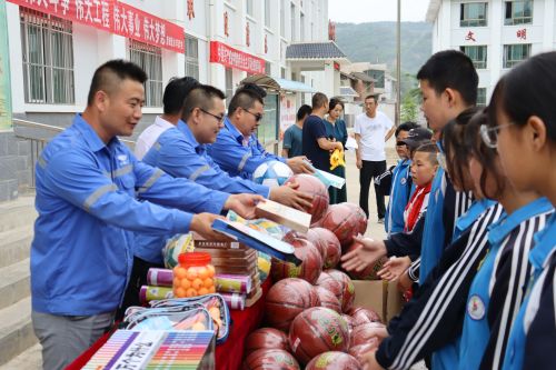 景禮項目黨支部為禮縣崖城鎮(zhèn)九年制學校送去了書籍、籃球等體育用品和學習用品,并鼓勵孩子要汲取力量,樹立信心,做一個臉上有笑容、心中有陽光的孩子,用一顆感恩的心、以優(yōu)異成績回報父母,回報社會。