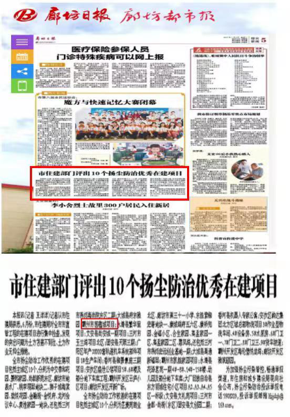 7月7日,從廊坊市住建局獲悉,中國(guó)二冶城建分公司河北霸州市國(guó)蘊(yùn)城項(xiàng)目榮獲廊坊市揚(yáng)塵防治優(yōu)秀在建項(xiàng)目。《廊坊日?qǐng)?bào)——綜合新聞》以題為《市住建部門評(píng)出10個(gè)揚(yáng)塵防治優(yōu)秀在建項(xiàng)目》進(jìn)行跟蹤報(bào)道,并進(jìn)行公布。