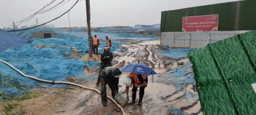 中原分公司周口貴和家園棚改A區(qū)項目部清理地下車庫施工現(xiàn)場積水