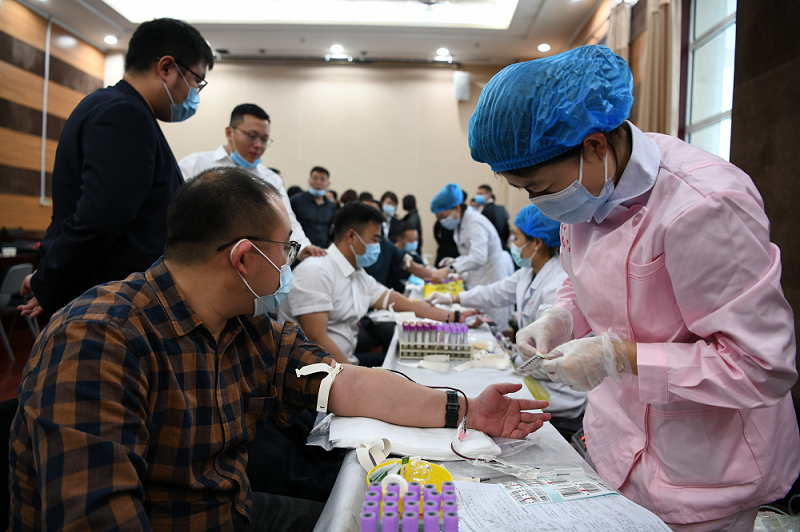 在活動現(xiàn)場,前來獻(xiàn)血的職工絡(luò)繹不絕。在工作人員的組織下,大家按疫情防控要求,分隊(duì)列、分批次踴躍獻(xiàn)血,按順序進(jìn)行了領(lǐng)表登記、血型測定、體檢、抽血和觀察休息,活動現(xiàn)場秩序井然。獻(xiàn)血過程中,有常年堅(jiān)持無償獻(xiàn)血的“獻(xiàn)血模范”,也有初次參加無償獻(xiàn)血的“新鮮力量”,大家紛紛表示,能以無償獻(xiàn)血這種方式向社會傳遞正能量,感到特別有意義。當(dāng)大家完成獻(xiàn)血時,他們臉上都露出了欣慰的笑容。